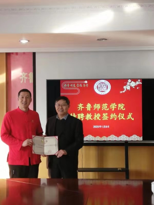 1月8日上午,BEAT365官网聘请中华武状元陈超为特聘教授仪式在历下校区办公楼四楼会议室举行。党委副书记、校长林松柏出席仪式,并为陈超教授颁发聘书。仪式由体育学院院长刘健教授主持,人事处副处长李伟、体育学院副院长胡义忠、教师代表张立天参加受聘仪式。