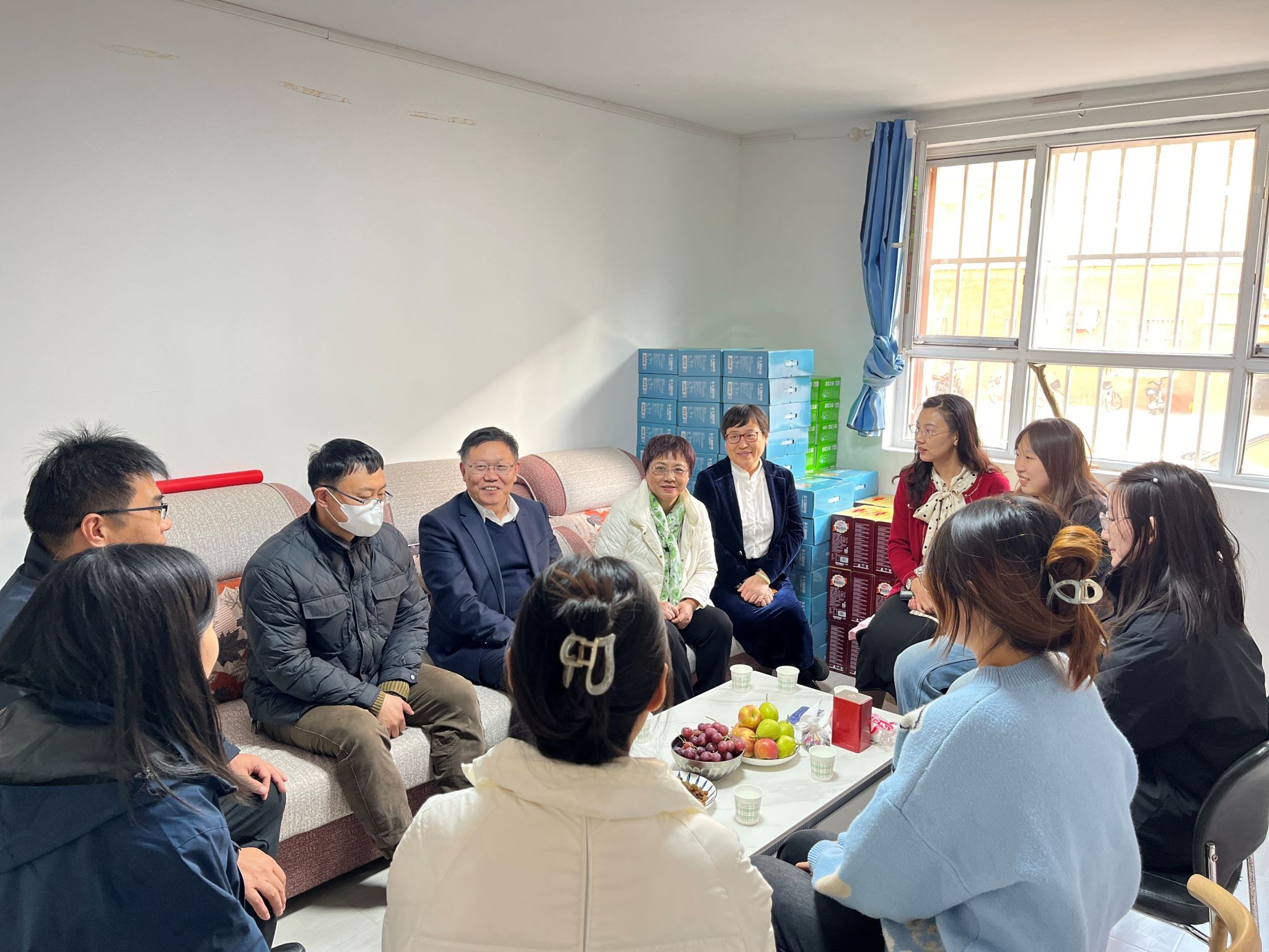 林松柏一行首先深入援疆实习支教团师生的宿舍,实地考察了支教团的生活居住环境,并与师生们进行了面对面地亲切交流。在交流中,林松柏分享了个人实习经历,鼓励学生们珍惜支教机会,勇于实践,不断磨砺自我。他对支教团师生在短时间内取得的显著进步表示高度赞扬,并勉励他们继续保持积极向上的精神风貌,努力工作,圆满完成实习支教任务。林松柏指出,实习支教不仅是一次宝贵的人生经历,更是培育教育情怀与使命感的重要途径。同时,他代表学校党委向实习支教学生和带队教师赠送了慰问品,送上全校师生的深切关怀与殷切期望。