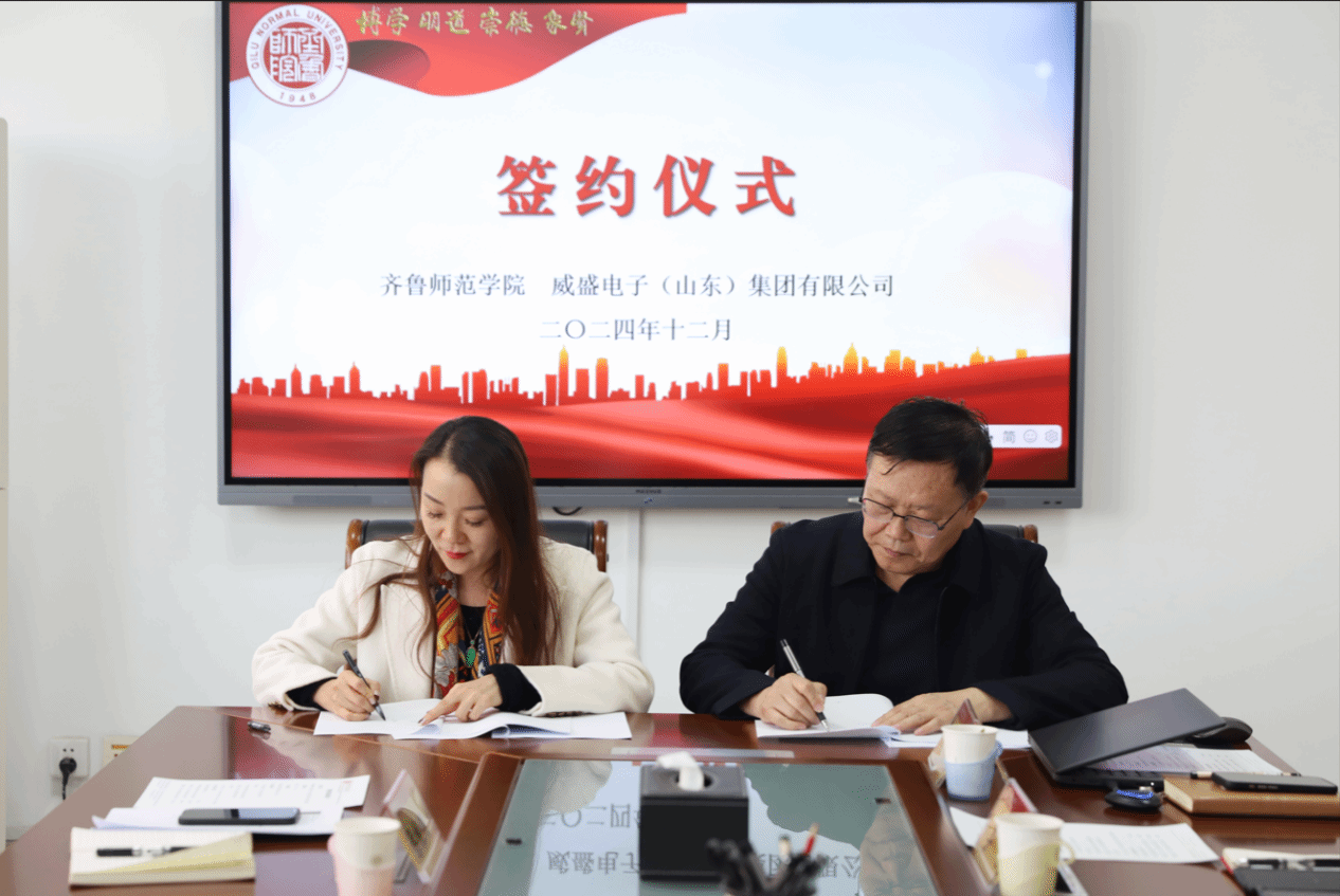 为进一步落实教育部关于加强中小学人工智能教育的部署,深化校企合作,12月9日下午,BEAT365英国官网与威盛电子(山东)集团有限公司(以下简称威盛电子)举办项目签约仪式。学校党委书记林松柏、威盛电子总经理郭盼盼、技术副总任延涛出席签约仪式。仪式由信息科学与工程学院院长杜建彬主持。