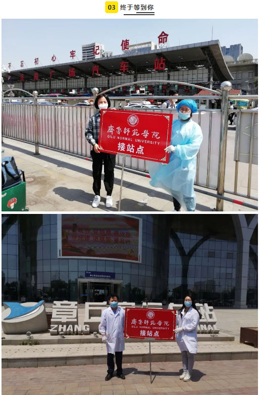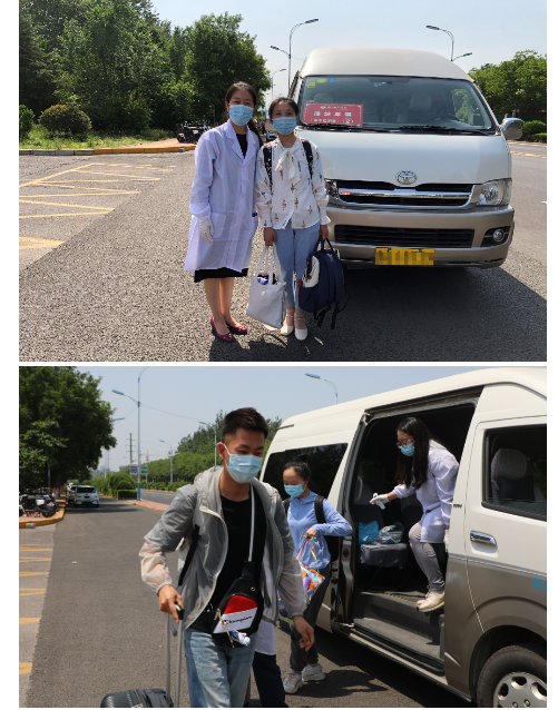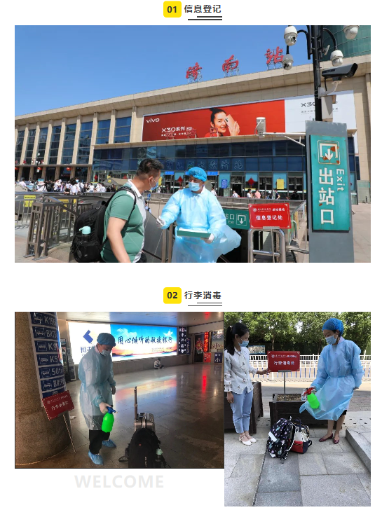 学校专门在高铁站和火车站等学生返济人流密集处设置接站点并安排了专门车辆。学生到站后,由学校已培训教职工负责返校学生的个人消毒、行李消毒、体温测量、信息登记、安排入座等工作,确保每一位学生身体健康和生命安全。