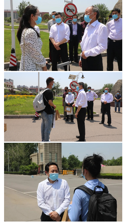 校党委书记王玉华,党委副书记、校长林松柏,党委副书记刘宝君,副校长刘德增,党委委员、副校长张福建率领相关部门负责人在学校北门入口迎接返校同学,学校领导对返校同学说:“欢迎你回家”,亲手交给学生暖心大礼包,与同学们亲切交谈,叮嘱同学们增强个人安全防护意识,理解并严格遵守校园疫情防控管理规定,同时要珍惜宝贵的校园时光,顺利完成学业任务,做到防疫和学业两不误。