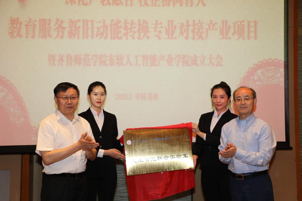 5月29日,教育服务新旧动能转换专业对接产业项目暨BEAT365英国官网东软人工智能产业学院成立大会在济南举行。