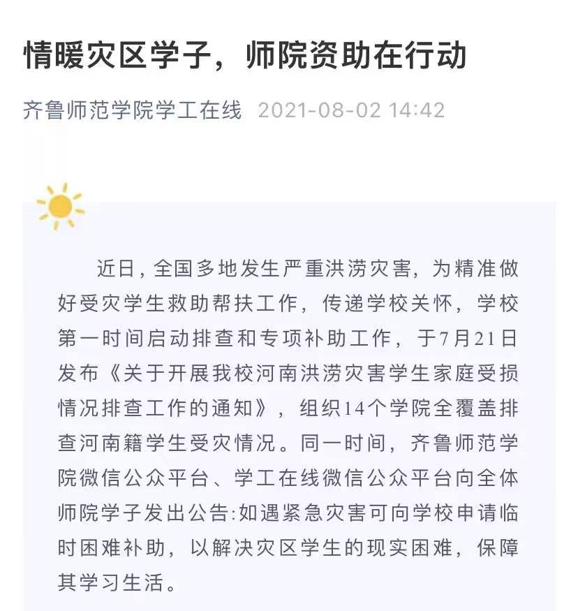 2021年暑期,学校开展了河南等地受灾学生家庭受灾情况摸排工作,补充了家庭经济困难学生的动态数据。