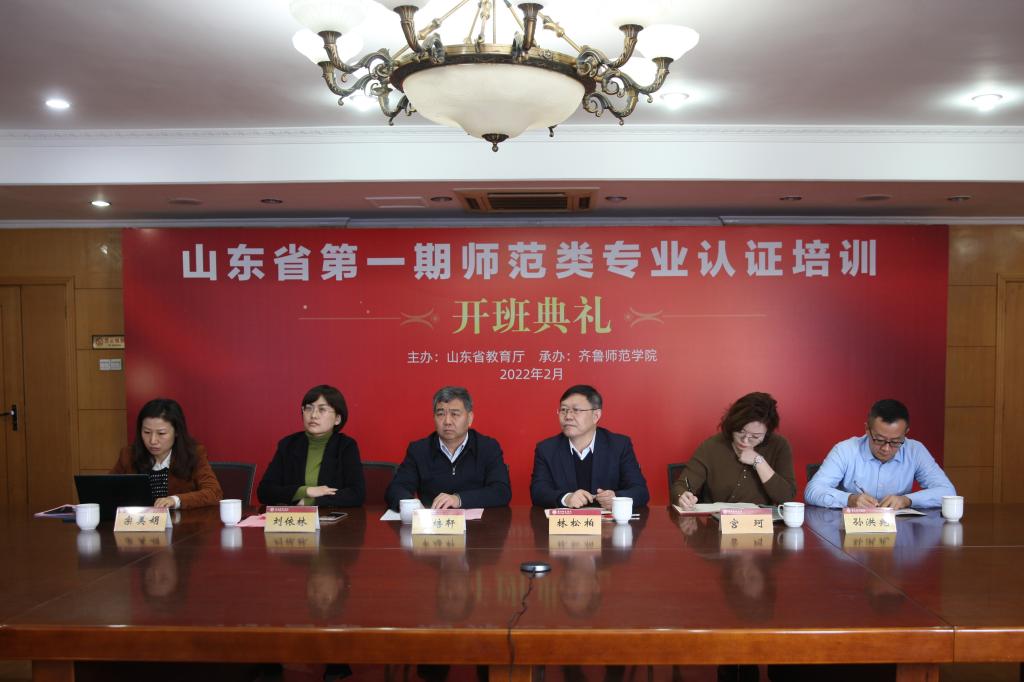 2月23日上午,山东省第一期师范类专业认证培训开班仪式在BEAT365英国官网历下校区举行。教育部教育质量评估中心副主任周爱军通过视频形式出席并作开班报告,山东省教育科学研究院院长申培轩,省教育厅教师工作处副处长刘依林,BEAT365英国官网党委副书记、校长林松柏,山东省教育科学研究院负责专业认证工作的宫珂博士,以及学校教务处、教学质量监控与评估处负责人出席了开班典礼。开班仪式由刘依林主持。