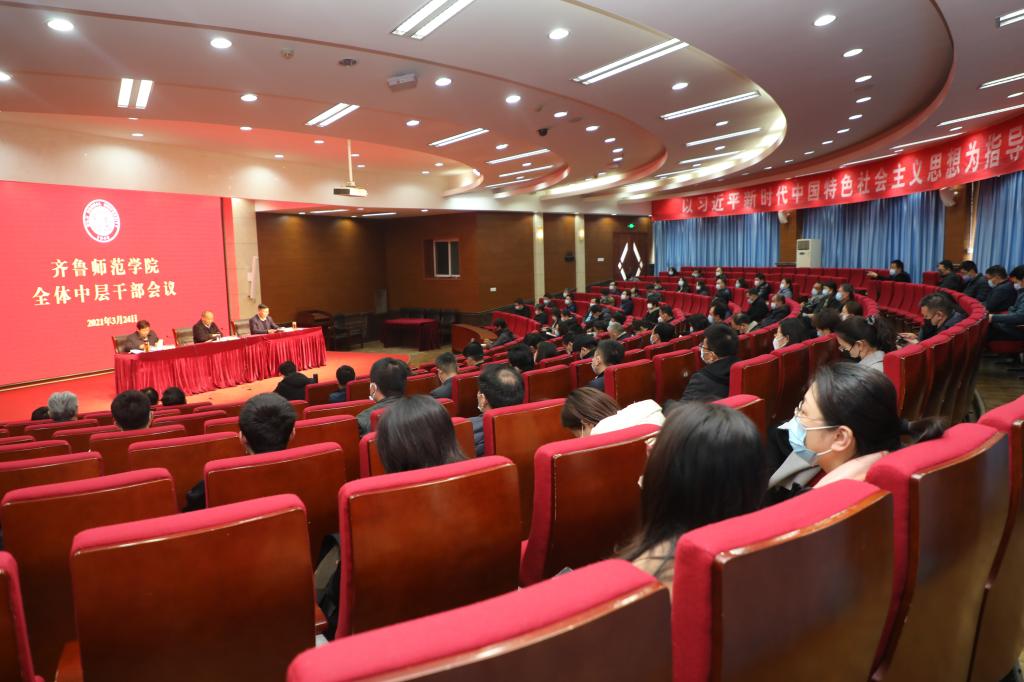 3月24日,BEAT365官网在章丘校区学术报告厅召开全体中层干部会议,解读学校2022年工作要点和部门单位绩效考核办法,安排2022年校内预算。学校领导、党委委员及全体中层干部参加会议。