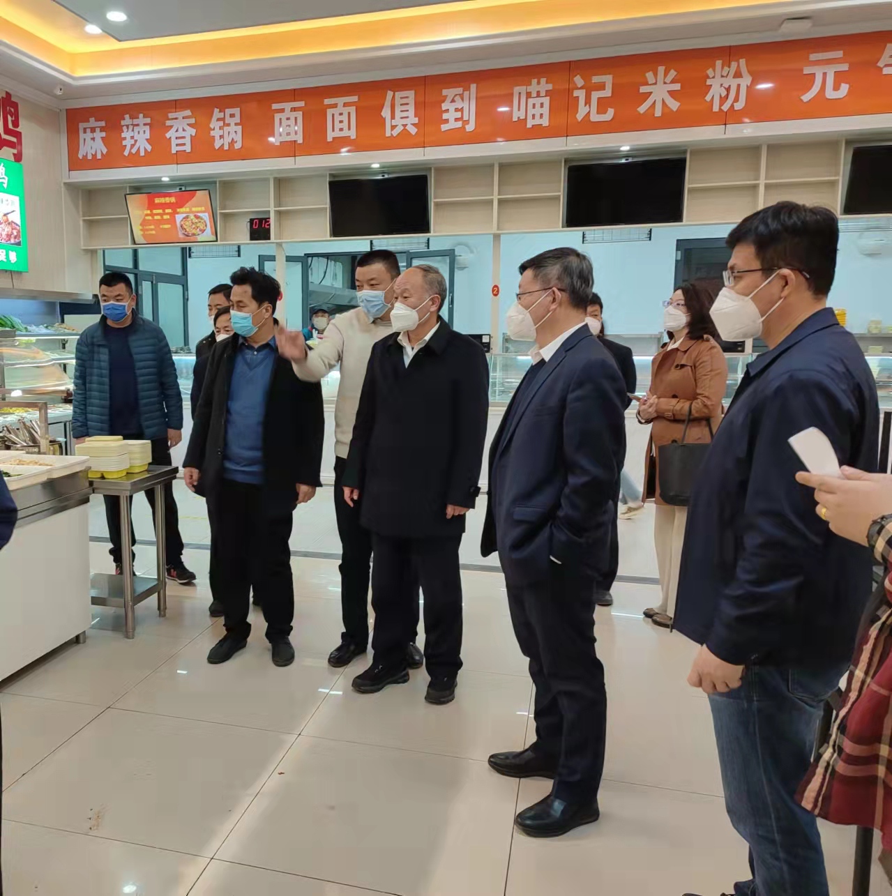 王玉华一行到学校第一餐厅、第二餐厅、南苑餐厅、超市等场所,每到一处都详细察看对比商品价格、食堂饭菜份量、学生生活必需品供给等情况,并不时地向取餐学生了解对学校伙食供应质量、价格、服务等方面的意见。