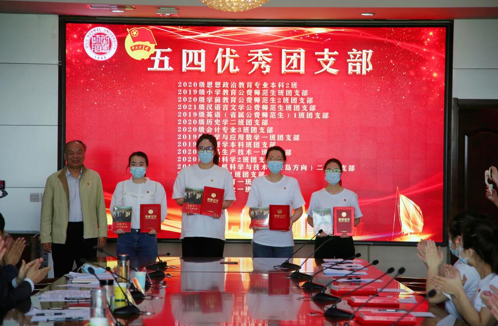 为表彰先进、弘扬典范,进一步激励广大青年围绕人才培养中心,服务立德树人大局,在强化团员青年思想政治引领、服务学生成长成才、繁荣校园文化、团学组织改革等方面发挥重要作用,会议对15 个五四优秀团支部、19名五四杰出青年、9个五四优秀社团以及1258名五四优秀青年志愿者给予通报表彰,由学校领导为受表彰的集体和个人颁发奖状,并赠送《习近平与大学生朋友们》书籍。