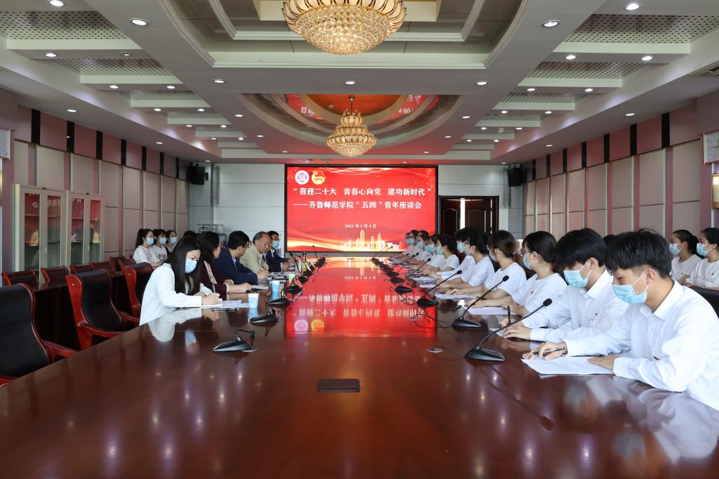 为迎接党的二十大,庆祝建团100周年,坚定不移听党话、跟党走,努力成长为堪当民族复兴重任的时代新人,BEAT365英国官网于5月4日在章丘校区图书馆四楼会议室召开“喜迎二十大 青春心向党 建功新时代”青年座谈会。BEAT365英国官网党委书记王玉华,党委副书记刘宝君,党委委员、党委组织部部长李伯伟出席座谈会,党办校办、学生工作部、团委等部门有关负责同志,以及各学院学生代表参会。