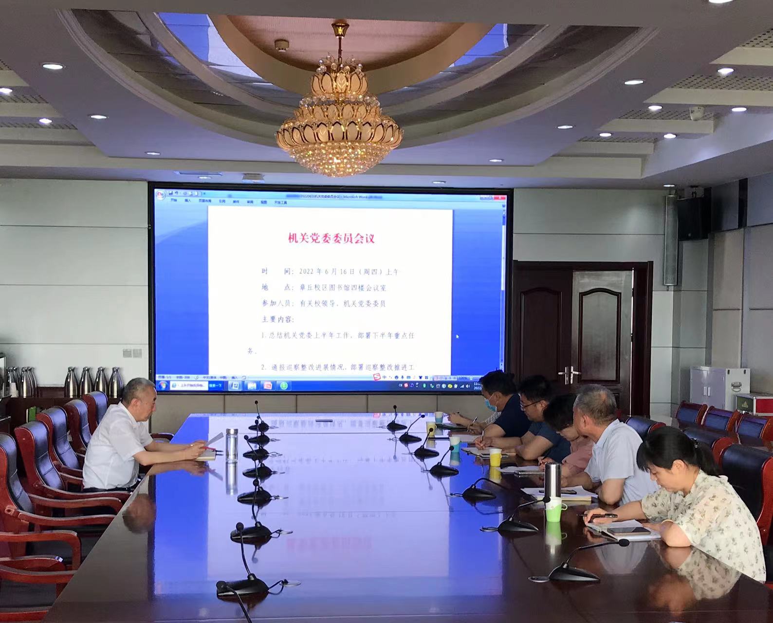 学习结束以后,机关党委召开全体委员会议,总结机关党委上半年工作,部署下半年重点任务;通报了学校党委巡察机关党委反馈意见整改落实进展情况,部署巡察整改推进工作;传达了学校党委《关于认真学习宣传贯彻省第十二次党代会精神的通知》《关于开展〈中国共产党普通高等学校基层组织工作条例〉贯彻落实情况自查工作的通知》和规范党务工作的实施方案,以及学校省级文明校园创建工作领导小组办公室《关于对文明校园创建工作进行督导的通知》,并就相关工作进行部署。会议还讨论了党员发展等事项。