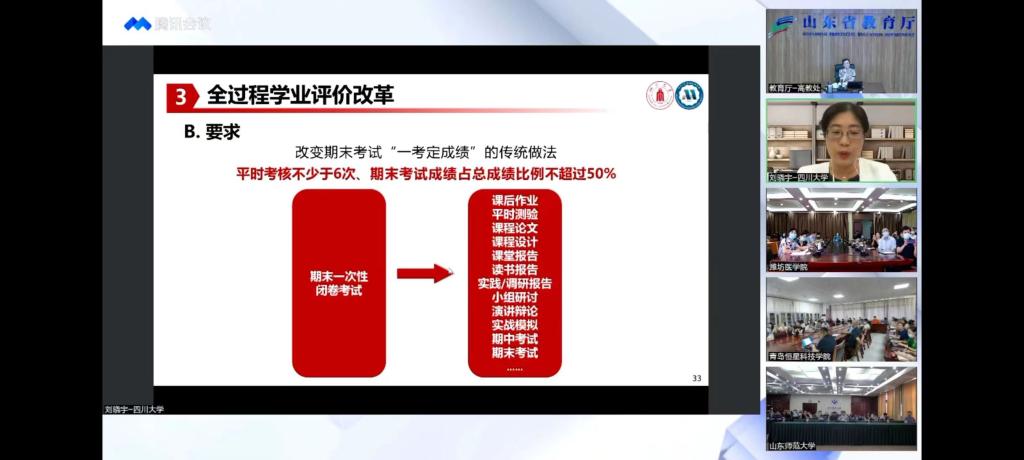 山东省教育厅高教处处长李霞深度解读《山东省教育厅关于推动课堂教学改革全面提高普通本科高校人才培养质量的通知》文件精神,结合“川大模式”详细介绍课堂教学改革顶层设计、推进路径与保障机制。