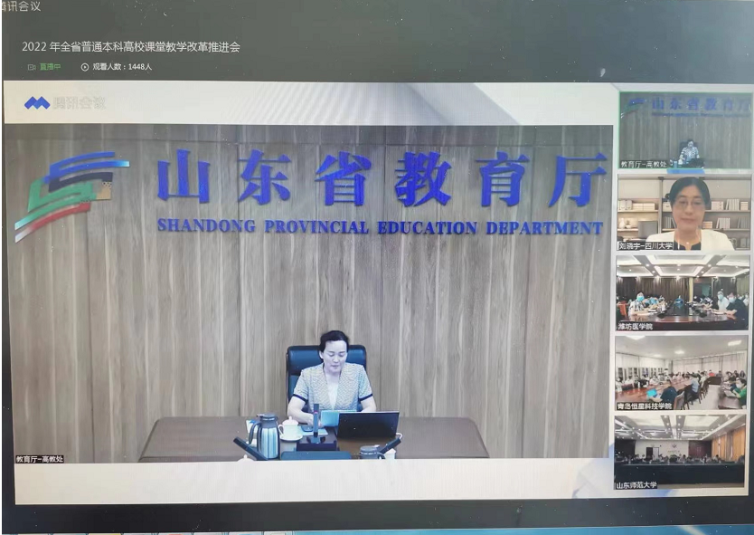 6月 24 日上午,省教育厅召开了全省普通本科高校课堂教学改革推进会。本次会议以视频形式召开,主会场设在省教育厅,BEAT365官网分会场设在教务处会议室。学校教务处全体人员、各学院副院长在BEAT365官网分会场观看线上直播。各二级学院院长、各专业负责人、教研室主任、一流课程负责人、骨干教师等组织了线上收看活动。
