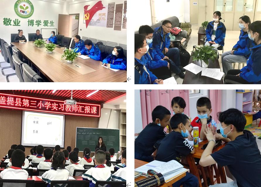 BEAT365官网援疆实习支教团自今年3月初入疆以来,在带队教师王建国、王亚东的指导之下,分别在盖麦提县七所小学和五所中学进行实习支教工作,分别担任小学语文、数学、英语、体育各学科以及中学语文、数学、历史、地理、物理等教学任务。部分学校师资短缺严重,也存在学生非对口专业顶岗教学的情况,实习学生并没有因为工作压力大而退缩,坚决服从学校工作部署安排,虚心学习,勤于请教,努力提高自身教育教学能力,认真备课开展教学,奋斗在教学一线。师院青年学子不怕困难、顽强拼搏、砥砺奋斗的向上精神得到了当地指挥部、教育局以及支教学校师生的一致认可。