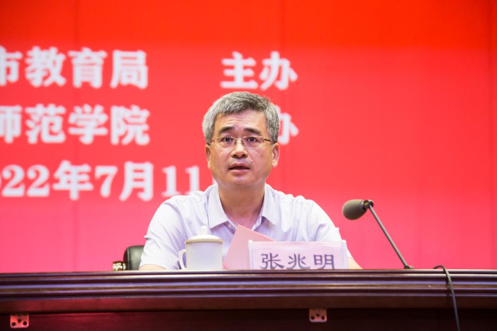 张兆明代表BEAT365英国官网讲话。他指出,本次启动仪式暨集中培训是对115名第四期东营名师名校长人选进行培养培训的动员会,也是导师与学员的第一次见面会;培训坚持需求导向和实践导向,导师指导和集中培训交叉进行,通过培训,让名师名校长人选提升专业理念,学习课题研究的理论与方法,组建学习共同体,解决实践中的教育教学问题。他提出,各位名师名校长人选要珍惜和充分利用集中培训的时间,通过不断学习,提高自身的师德修养和专业素养;要勤于思考,带着问题培训,主动向授课专家请教,主动与导师研讨,请他们给予针对性的指导,名师名校长之间加强交流,相互启发,共同成长;承担培训任务的基础教育服务中心要严格执行培训方案,积极认真地做好培训管理,保证高质量完成培训工作,实现培训目标。