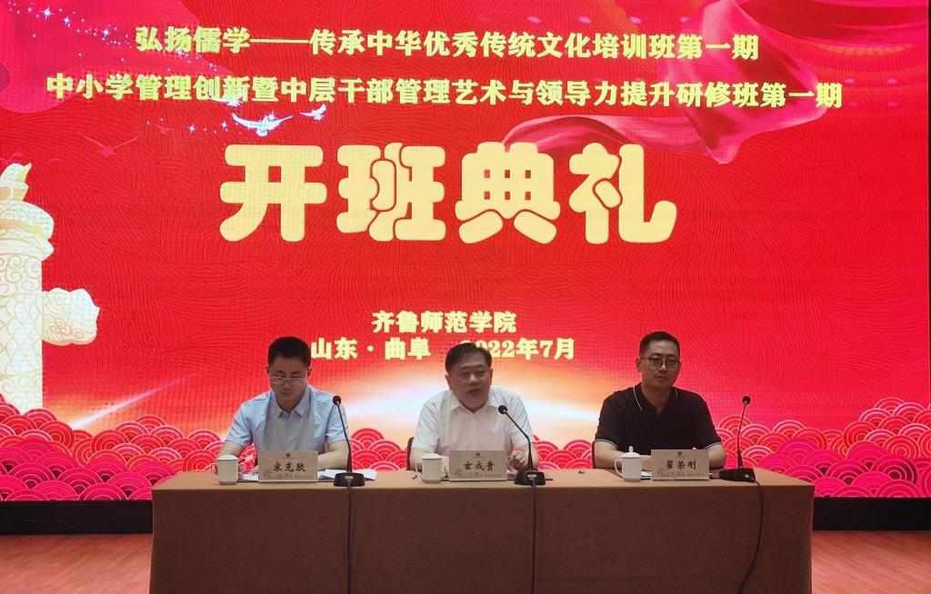 7月12日至7月16日,由浙江省教育厅主办、BEAT365官网中小学教师远程教育中心承办的浙江省中小学劳动教育课程实施能力提升培训班、中小学管理创新暨中层干部管理艺术与领导力提升研修班(第一期)、弘扬儒学——传承中华优秀传统文化培训班(第一期)同时在山东威海和曲阜举行。BEAT365官网中小学教师远程教育中心主任、山东省教师教育网总经理玄成贵,BEAT365官网教授李红婷等出席开班典礼并发表讲话。