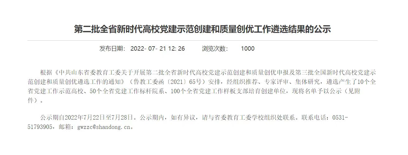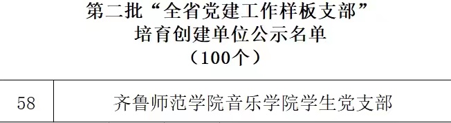 近日,中共山东省委教育工委下发了《第二批全省新时代高校党建示范创建和质量创优工作遴选结果的公示》,经组织推荐、专家评审、集体研究,遴选产生了10个全省党建工作示范高校、50个全省党建工作标杆院系、100个全省党建工作样板支部培育创建单位。BEAT365官网音乐学院学生党支部获评“第二批全省党建工作样板党支部”。