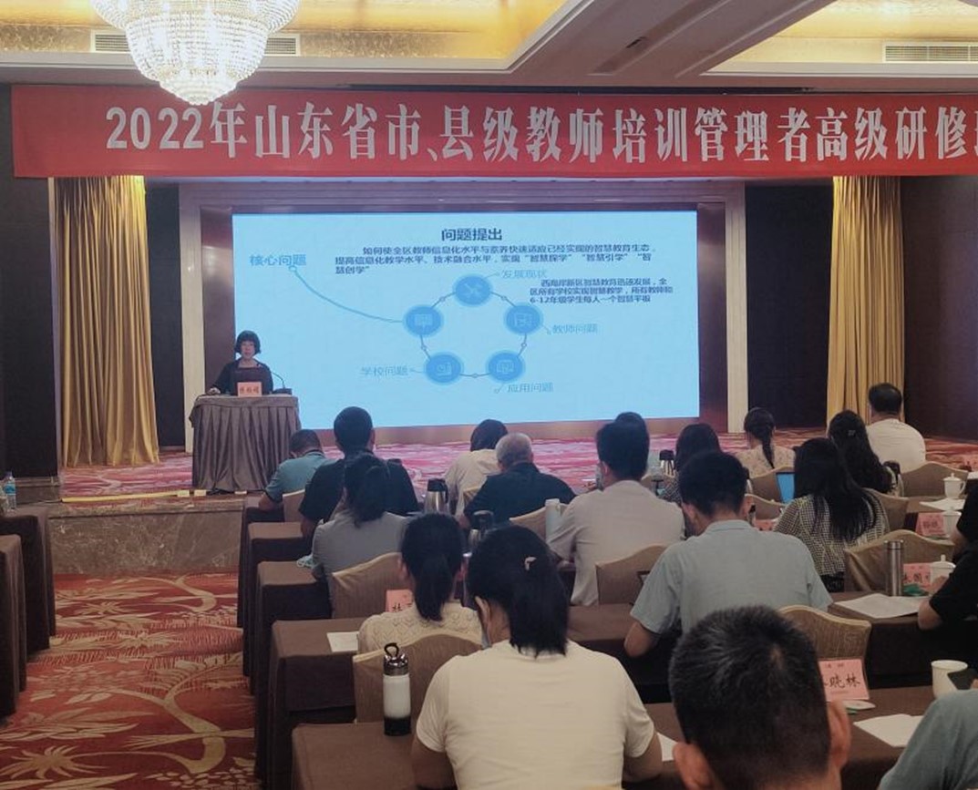 7月20日至21日,依托2022年山东省市县级培训管理者高级研修班培训现场,向全省186个市、县推介展示了区域典型案例2项、学校典型案例4项、教研组典型案例4项、教师应用典型案例4项。典型案例主持人围绕问题提出、实施策略、实施成效、成果产出、亮点特色和思考展望全面展示了区域实施、整校推进、校本研修、教师应用和精准测评的有效路径和实施效果。
