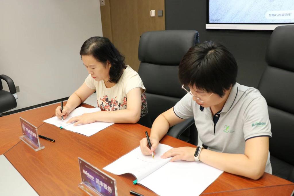 赵敏与市场支持线总经理李冬冬签署校企共建协议。