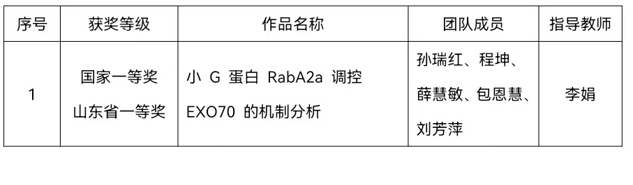 本届竞赛自去年启动以来历时一年时间,完全由学生组成的各参赛团队在老师的指导下刻苦钻研、不畏挑战,独立完成项目的实验设计、实践实验、数据处理、论文撰写、项目答辩等环节,项目研究成果均获得竞赛评委的高度肯定。生命科学学院李娟博士指导、孙瑞红同学担任负责人的《小G蛋白RabA2a调控EXO70的机制分析》作为省赛一等奖获得者被推荐进入国赛,经过与各高校参赛团队的激励竞争,最终代表山东省取得国家一等奖,实现了BEAT365官网在此类比赛一等奖的突破。