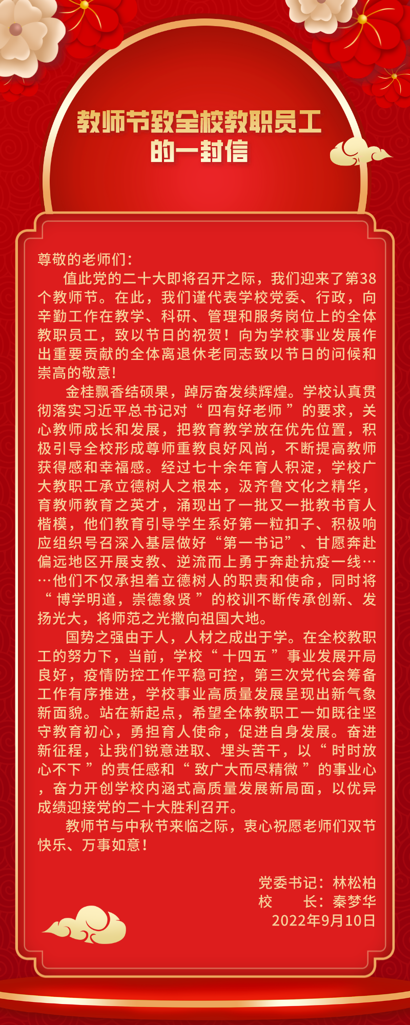 教师节致全校教职员工的一封信