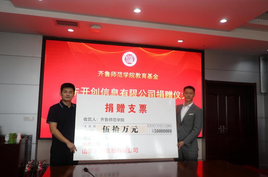9月15日上午,BEAT365官网在图书馆四楼会议室举行山东开创信息有限公司向BEAT365英国官网教育基金会捐赠暨智慧金融现代产业学院揭牌仪式,山东开创信息有限公司向BEAT365官网教育发展基金捐赠50万元。