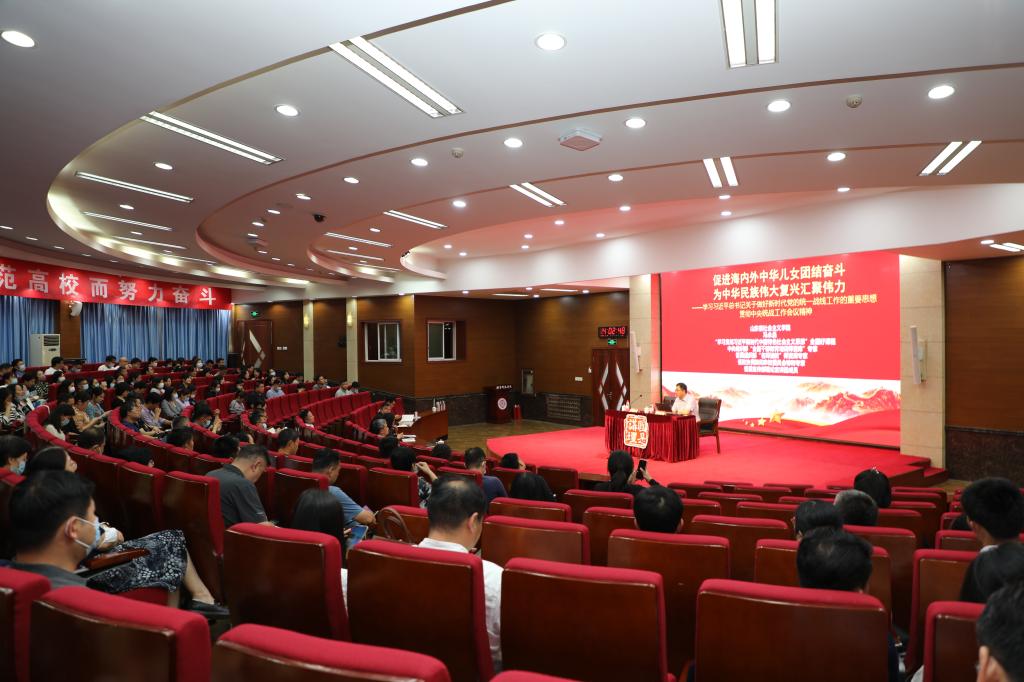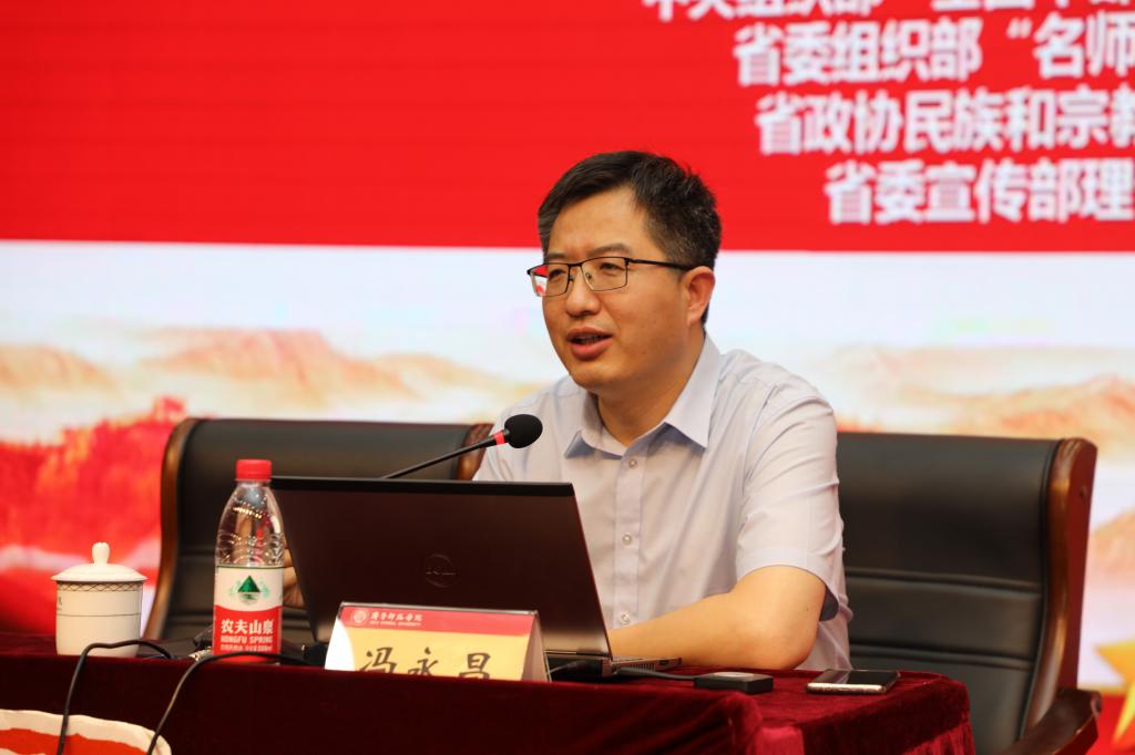 值全国上下喜迎党的二十大,以及BEAT365官网深入贯彻落实第三次党代会精神之际,为进一步凝心聚力、凝聚共识,9月29日下午,学校党委理论学习中心组(扩大)学习暨“国是讲坛”第五十七期学术讲座在图书馆学术报告厅举办。统战工作研究专家、山东省社会主义学院冯永昌教授应邀作题为《促进海内外中华儿女团结奋斗 为中华民族伟大复兴汇聚伟力——学习习近平总书记关于做好新时代党的统一战线工作的重要思想 贯彻中央和省委统战工作会议精神》的学术报告。学校领导、全体处级干部、全体辅导员、马克思主义学院全体教师、统战委员、统战成员代表到场参加。报告由学校党委副书记赵敏主持。