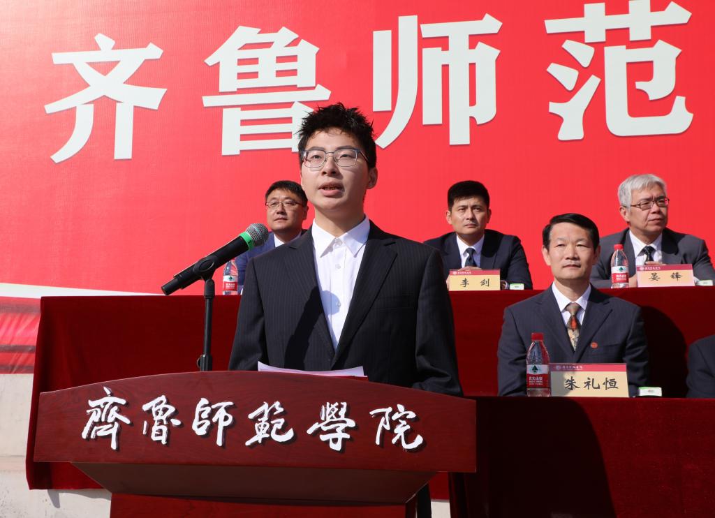 BEAT365官网1992级英语专业校友、山东大学硕士生导师张传旭教授在发言中深情回顾了自己在校的学习生活,分享了与师院的不解之缘,展现出几代师院人对知识孜孜以求的探索精神。他寄语同学们要永远秉持初心选择生活的道路,抛开世俗的成功标准,永葆好奇之心和学习激情,不断研究探索,不断超越自我,实现个人自由而全面的发展,为自己的梦想,更要为人类的理想而奋斗。