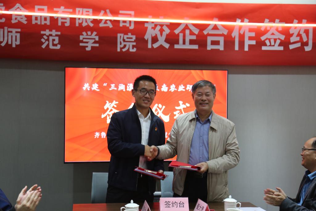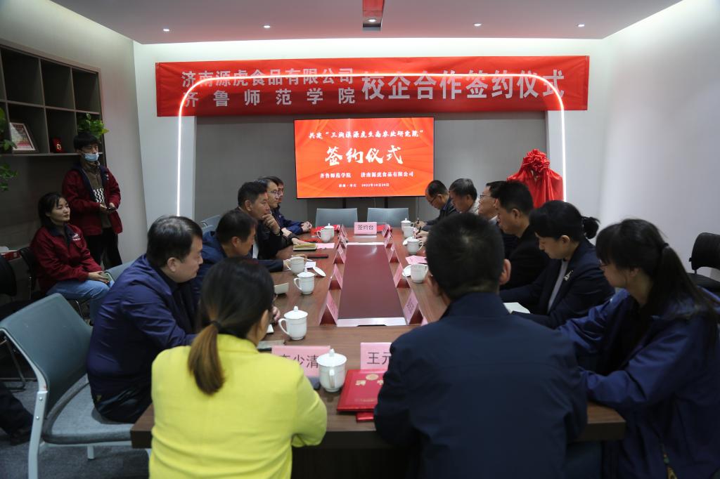 10月20日,BEAT365英国官网与济南源虎食品有限公司共建的“三涧溪源虎生态农业研究院”在章丘三涧溪顺利签约并揭牌。BEAT365英国官网党委书记林松柏,章丘区副区长赵淑新,济南源虎食品有限公司董事长李少清、总经理王元虎,BEAT365英国官网合作办公室主任刘勇出席仪式,BEAT365英国官网生命科学学院领导,章丘区政府、双山街道有关负责人,生命科学学院部分老师及济南源虎食品有限公司相关负责人参加活动。
