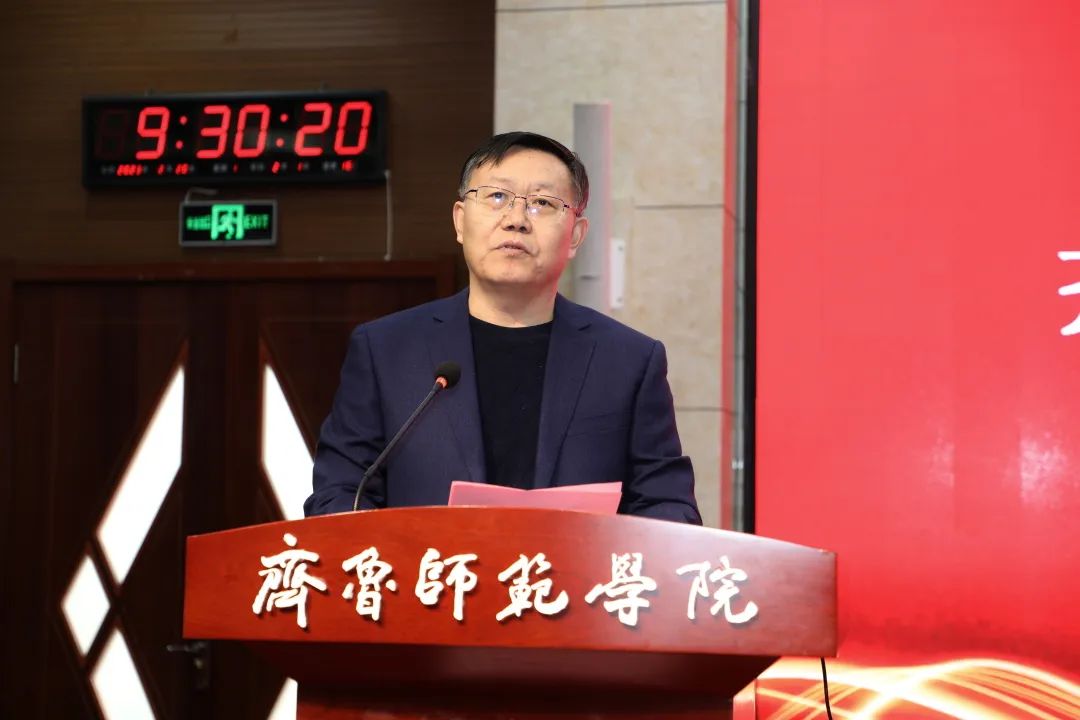 仪式伊始,林松柏代表学校党委向怀着崇高教育理想和信念,带着母校期望与重托,积极响应党和国家的号召,去祖国边疆无私奉献,为戈壁留芳的援疆实习支教团表示衷心的感谢,并对此次援疆支教的相关方针政策进行解读,以及阐释援疆支教的重要意义。林松柏指出学校党委、行政高度重视援疆实习支教工作。2022年12月,经山东省教育厅援疆指挥部充分酝酿,学校多次召开会议进行专题研究,通过层层选拔、严格把关,最终确定61名师生奔赴新疆开展援疆支教工作。对于此次援疆支教,林松柏对援疆师生提出四点希望:一、载一抱素,笃信以仰,做好民族团结的桥梁和纽带。二、志存高远,练就本领,成为新时代青年的榜样和模范。三、言为士责,行为世范,无愧援疆支教的使命和担当。四、令行禁止,尊重差异,体现师院学子的素养和风范。