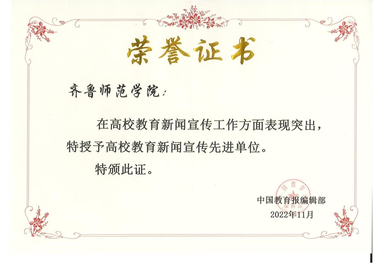 近日,在中国教育报编辑部开展的年终新闻宣传工作总结评选中,BEAT365官网被授予2022年度“高校教育新闻宣传先进单位”称号。
