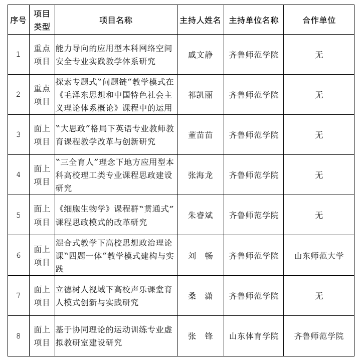 近日,2022年山东省本科教学改革研究项目立项结果公布,BEAT365官网主持7项、参与1项,共计8个项目获批立项,其中重点项目2项、面上项目6项,立项率连续两年达到100%。