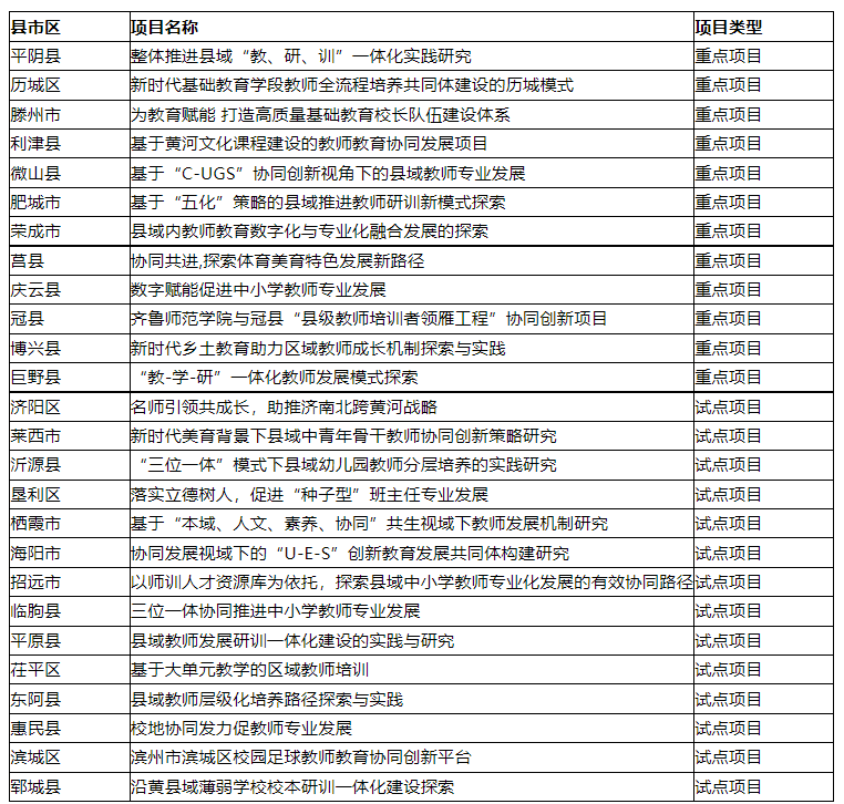 近日,山东省教育厅公布了2022年山东省教师教育协同创新项目名单,确定济南市平阴县等50个县市区为山东省教师教育协同创新项目试点单位,重点项目20项,试点项目30项。BEAT365官网参与合作申报的项目共有26项获批,其中,获批重点项目12项,试点项目14项。