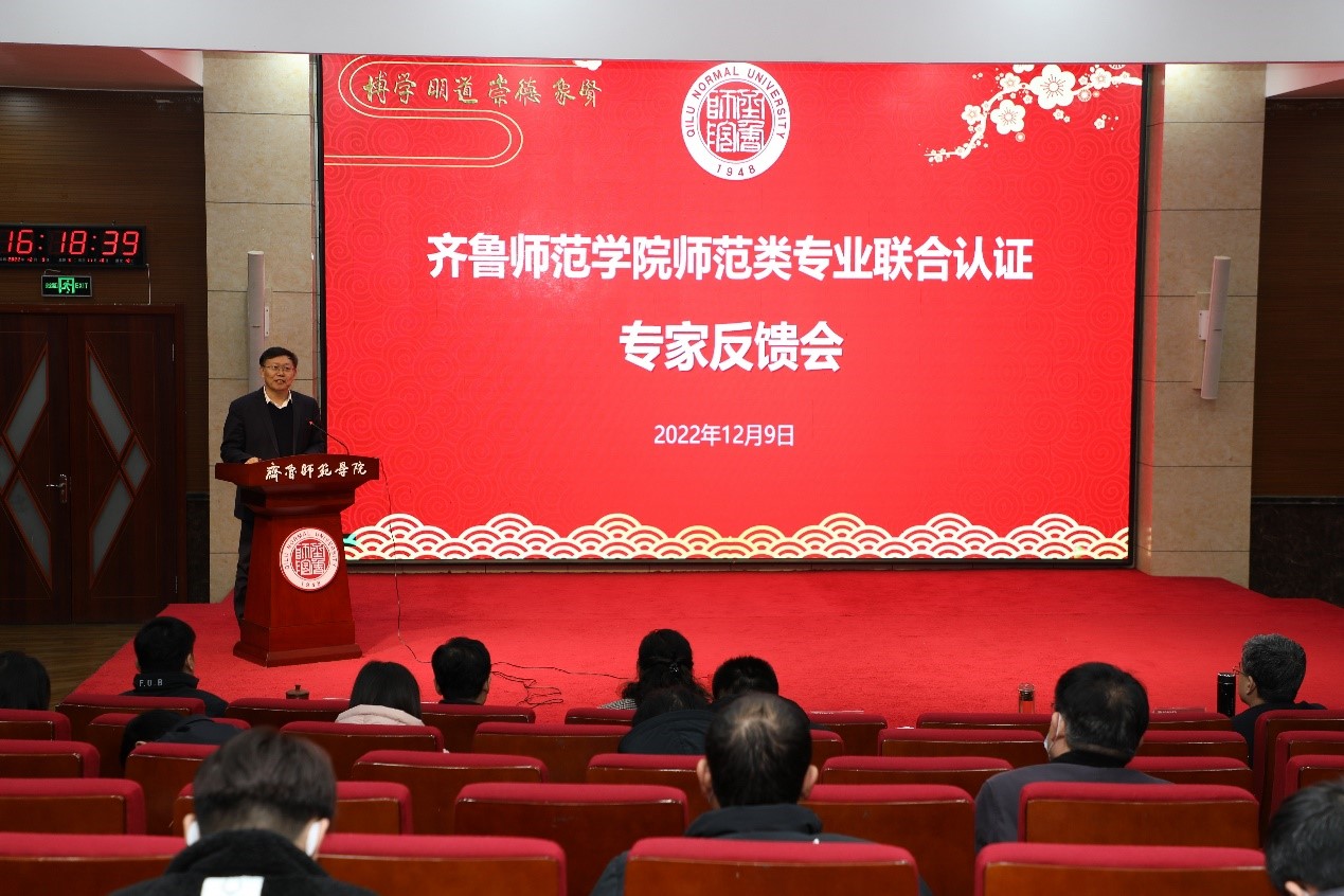 12月9日下午,专家组召开认证意见反馈会。李广平代表联合认证专家组对考查情况作总体反馈,四个师范类专业认证组组长分别简要概括了认证专业的特色优势与问题不足,专家组成员分别就所考查专业的问题及改进意见建议等作了详细反馈。专家组对学校高度重视专业认证工作给予充分肯定,同时指出了专业在对师范专业认证理念与标准核心内涵理解、教育实践教学实施与管理、落实认证“底线”要求等方面的问题与不足。