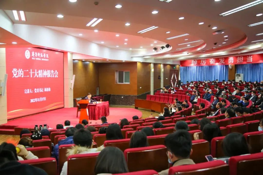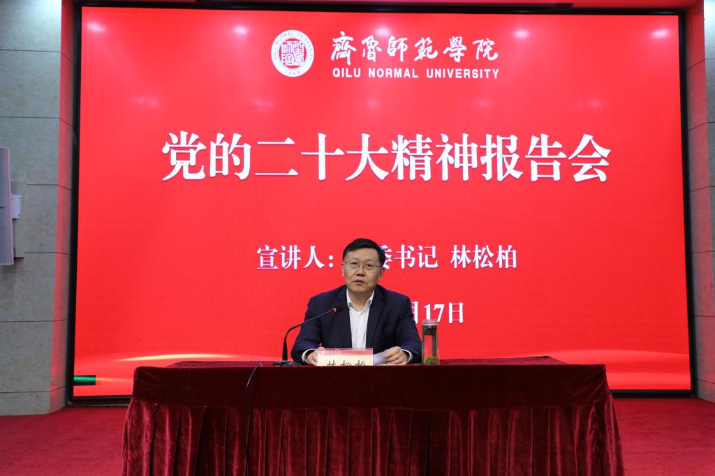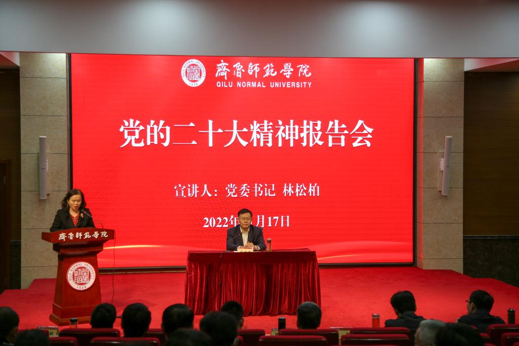 11月17日下午,BEAT365英国官网学习宣传贯彻党的二十大精神首场宣讲报告会在章丘校区图书馆学术报告厅举行。省属高校学习贯彻党的二十大精神宣讲团成员、BEAT365英国官网学习贯彻党的二十大精神宣讲团团长、党委书记林松柏进行宣讲。学校党委副书记赵敏主持宣讲报告会。
