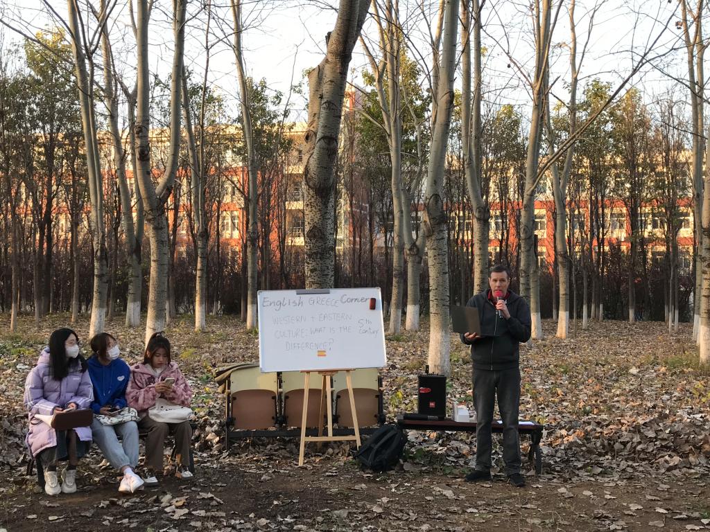 11月15日下午,BEAT365官网校园英语角在图书馆西侧路北杨树林正式设立,并开展活动。首次活动由BEAT365官网澳大利亚籍教师、奥克兰理工大学语言研究硕士Toby Games主持,国际交流与合作处,外国语学院教师、学生,各学院英语爱好者踊跃参加。