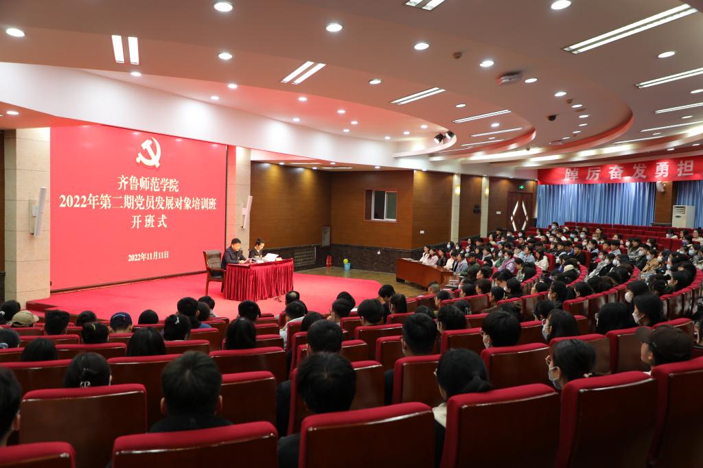 11月11日下午,BEAT365官网2022年第二期党员发展对象培训班开班式在章丘校区学术报告厅举行。学校党委委员、组织部部长杨磊出席开班式并作动员讲话。各学院党委副书记、团总支书记及330名发展对象参加了开班式。开班式由党委组织部正处级组织员马艳主持。