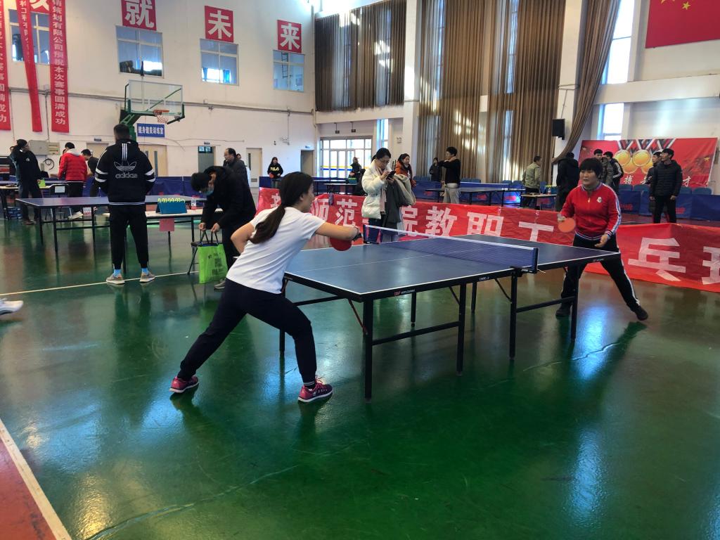 为丰富教职工业余生活,增强学校各部门工会的交流,校工会于12月成功举办了2021年教职工乒乓球比赛。校党委副书记刘宝君到现场为教职工加油助阵并参加了比赛,党委委员、统战部长宋新刚参加开幕式并宣布比赛开始。