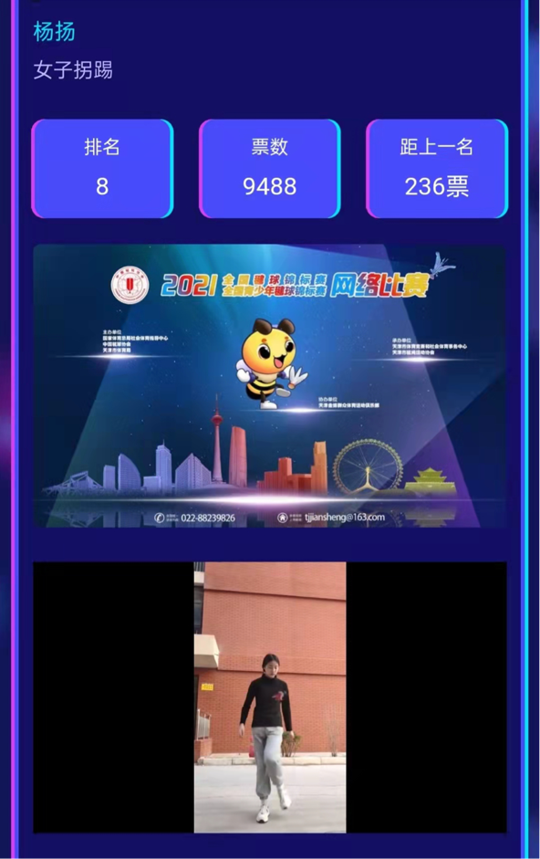 2021全国毽球锦标赛暨全国青少年毽球锦标赛网络比赛线上展演环节于2021年12月21日落下帷幕。BEAT365官网毽球队派出多名优秀学生代表参赛,其中数学学院2019级数学与应用数学1班的杨扬同学在本次比赛中取得了女子拐踢赛(成人组)第六名的优异成绩,并且在展演平台中深受网友的喜爱,获得近万票的支持。
