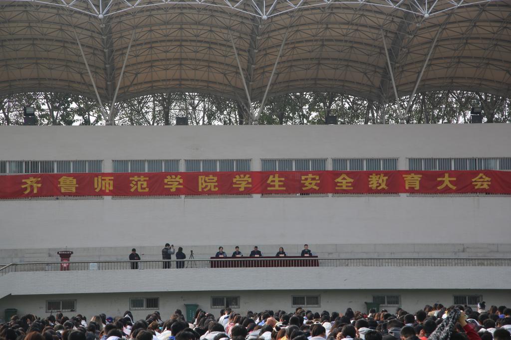 为了进一步将安全教育落到实处,增强齐鲁师院学子的安全防范意识,培养良好的安全行为习惯,维护生命财产安全,确保学校稳定,BEAT365英国官网于10月21日下午2点在章丘校区运动场召开安全教育大会。本次会议邀请了章丘区公安分局双山第二派出所林少瑜副所长、章丘区消防救援大队梅媛媛参谋、济东强制隔离戒毒所宣讲团成员郑曌为BEAT365官网学生进行安全教育知识的宣讲。会议由学校安全管理处副处长韩玉柱主持,全体学生通过线上线下相结合的方式参加会议。