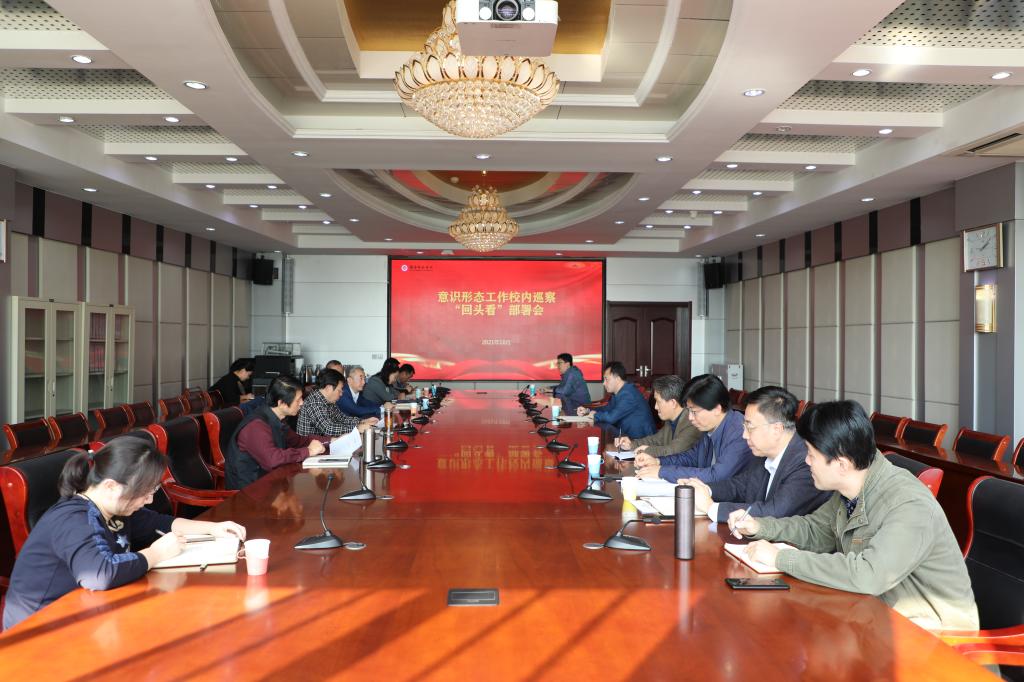 10月12日下午,BEAT365英国官网意识形态工作校内巡察“回头看”工作部署动员会在章丘校区图书馆四楼会议室召开。党委副书记刘宝君主持会议并讲话,10个“回头看”工作组的组长、副组长参加会议。