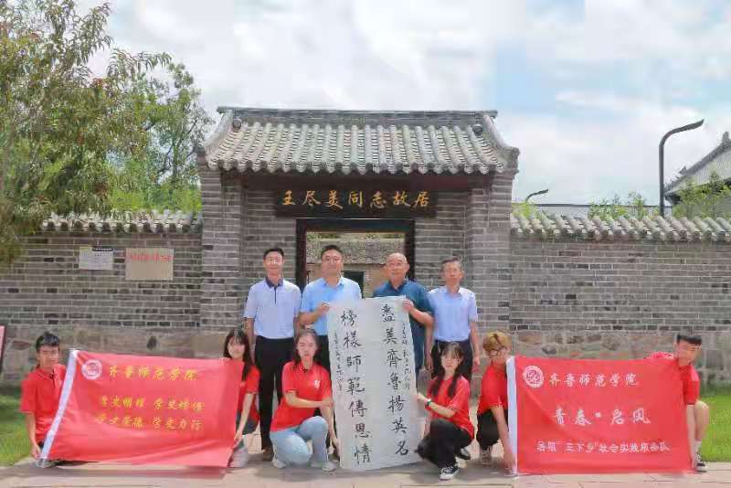党史学习实践团的队员们首先来到了北大杏村王尽美故居,了解青年时期的王尽美从家乡诸城到济南求学的那段历史。1918年春末夏初,年仅20岁的王尽美怀着寻找新生活的决心,寻求师范教育救国的道路,同年夏,他顺利考入山东省立第一师范学校,他希望自己从师范学成后,回乡做个乡村教师,从事乡村教育,从最基层进行启蒙。他曾说:“当我之入师范,对于师范教育本抱有极大的希望、无穷的信仰,希望“师范里一位学生就是发达教育的一个孢子,更换上光明纯洁的思想。这种知识的积累,为他以后走上革命的道路奠定了坚实的基础。