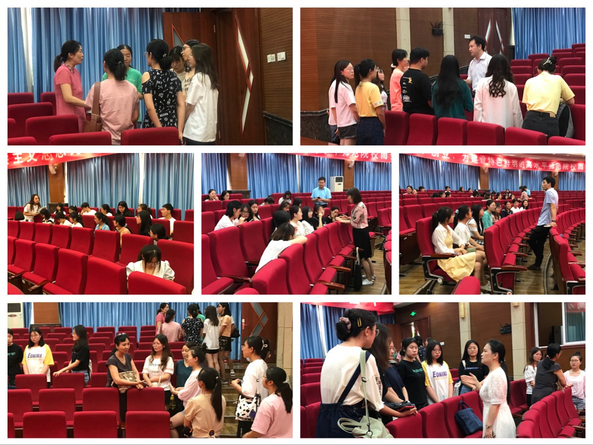 最后,文学院郝永静老师主要讲了两方面内容,教什么和怎么教。分解教学目标,制作了教学进度安排,梳理了教学的四个方面理念。一是知识教学和实践教学相结合,注重实训。二是以普测题目为主要训练题,三是集中评测和日常评测相结合,四是以普通话基本知识为脉络进行课程安排,注重详略得当难易结合。然后,以《单韵母》为例展示基本的教学过程,介绍基本的教学方法。对志愿者教师进行了专业培训。