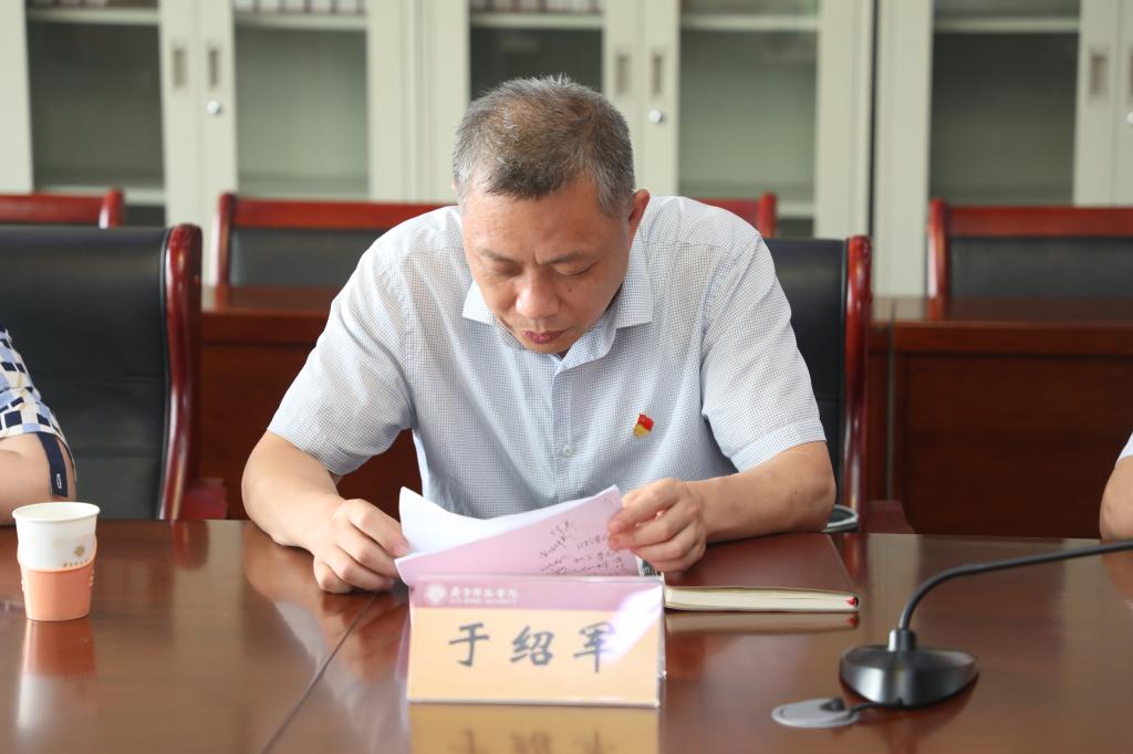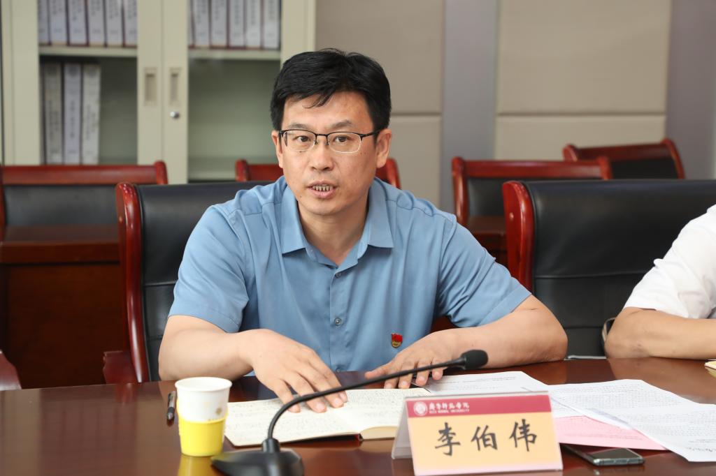 7月6日下午,BEAT365英国官网机关党委第四党支部(教务处)在章丘校区图书馆四楼会议室召开党史学习教育专题组织生活会。省委党史学习教育第十八巡回指导组副组长宋佐东、成员谭瑞暖两位同志到会督导指导。党委副书记、校长林松柏以普通党员身份参加, 机关党委党史学习教育督导组成员、党委委员、党委组织部部长李伯伟,学校党史学习教育督导组成员、纪委副书记于绍军和人事处科长姜晨,学校党史学习教育领导小组办公室成员、党委宣传部副部长辛源,以及机关党委第四党支部全体党员参会。会议由机关党委第四党支部书记张海龙主持。