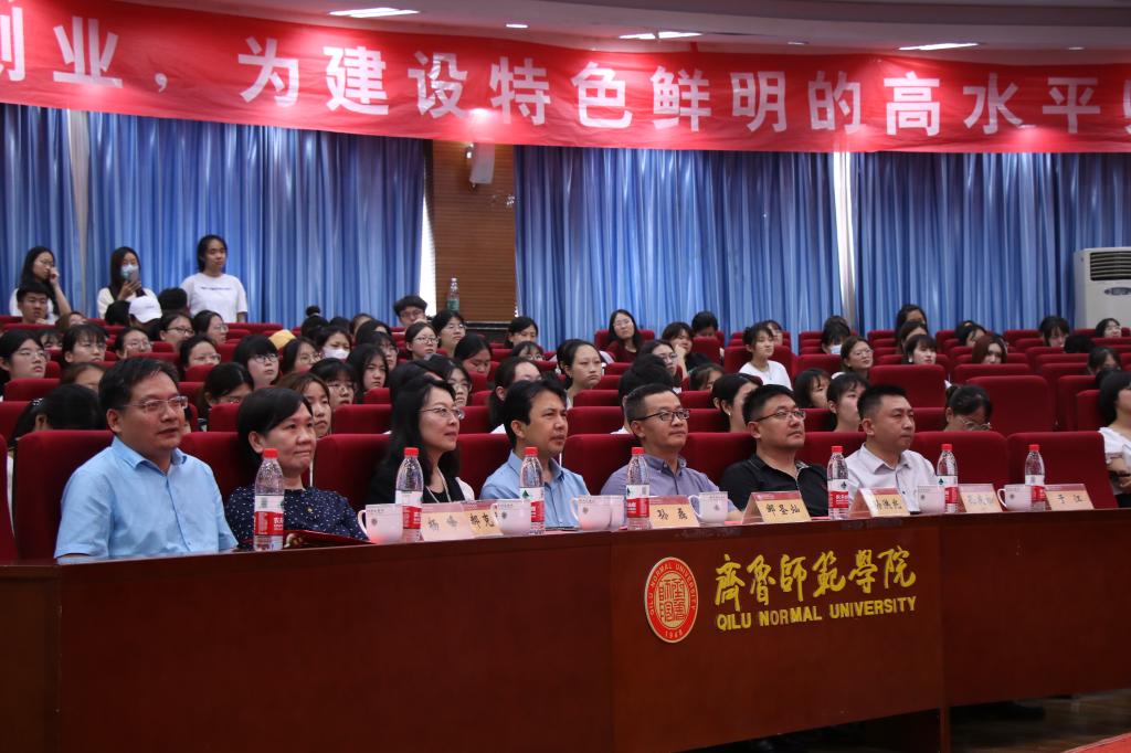 选树先进典型,传递奋斗情怀。6月10日下午,文学院在章丘校区图书馆报告厅隆重举行2021年“圣灿奖学金”颁奖典礼。BEAT365官网青岛校友会会长、青岛银色世纪健康产业集团有限公司董事长邹圣灿出席活动,学生工作部部长孙磊,团委书记孔庆松,教务处处长孙洪兆,学生工作处副部长、校友办主任郝克宁,文学院院长杨峰,文学院党总支副书记于江及获奖者代表在内的师生共计300余人参加了典礼。