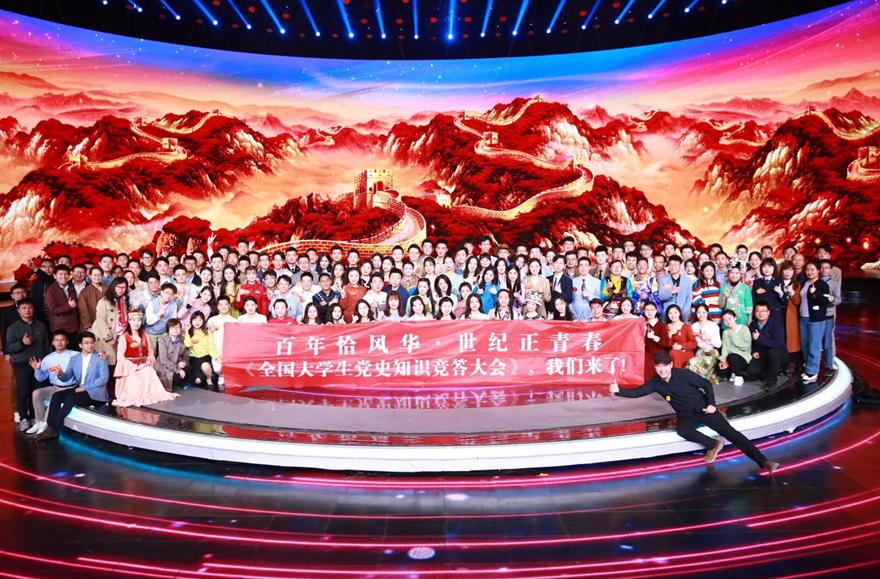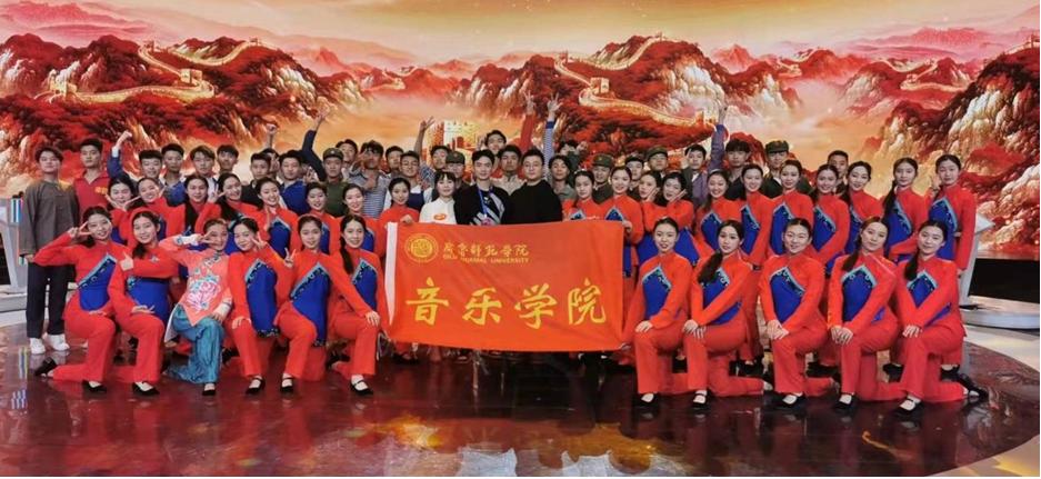为致敬英雄与祝福伟大祖国,教育部、国家语委、中央广播电视总台联合开展全国大学生党史知识竞答大会,3月16日至4月10日来自全国100所高校的百名学子齐聚北京参加《全国大学生党史知识竞答大会》。BEAT365英国官网音乐学院2019级音乐学专业学生刘佳琳代表山东省高校大学生之一参加了现场答题比赛,舞蹈学专业50余名学生参加了参加了《全国大学生党史知识竞答大会》文艺表演。