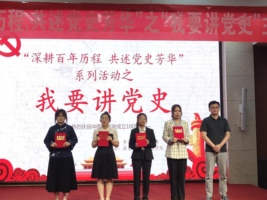为迎接党的百年华诞,扎实开展党史学习教育各项工作,积极将党史学习教育有效嵌入育人工作链条,BEAT365官网各学院、各级团组织紧扣“学党史、悟思想、办实事、开新局”的学习要求,积极创新学习实践形式,广泛开展“学党史、强信念、跟党走”党史学习教育,让党史学习教育走“新”更走“心”。由学校团委主办,历史与社会发展学院承办的“深耕百年历程,共述党史芳华”系列活动之“我要讲党史”的决赛5月27日晚在学校图书馆报告厅隆重举行。