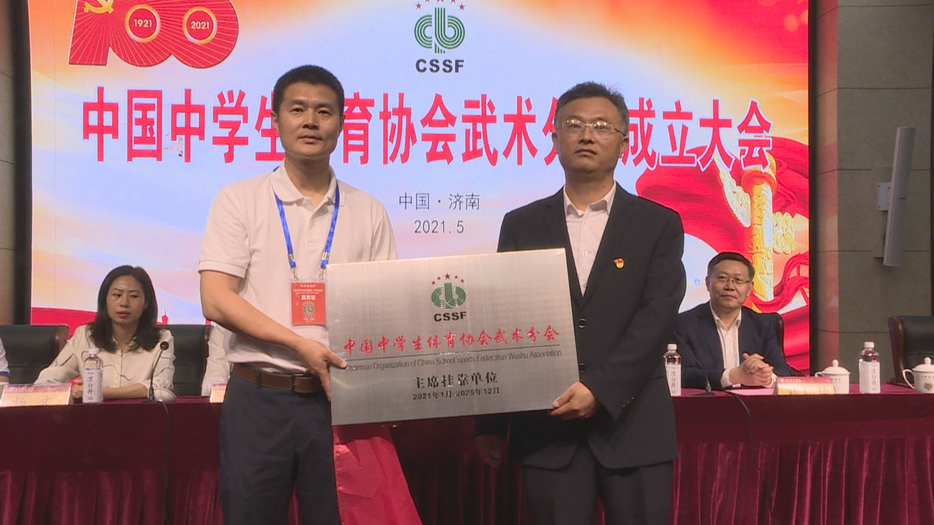 随后中国中学生体育协会秘书长张磊同志宣布中国中学生体育协会武术分会任命,副秘书长籍强同志为武术分会主席和秘书长颁发聘书,并向主席挂靠单位授牌。