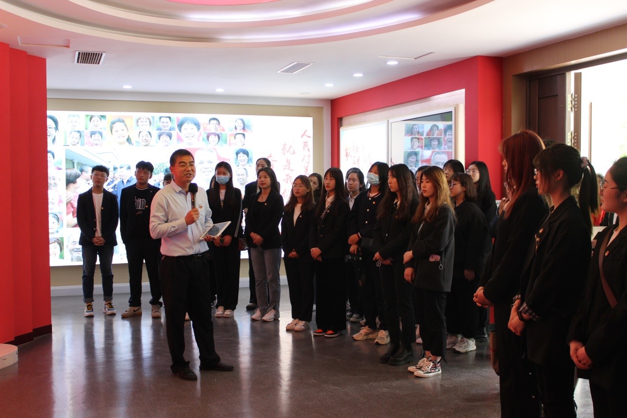 在三涧溪乡村振兴展馆前,三涧溪村党委书记高淑贞为学员们现场授课并与大家合影留念。高淑贞书记坚守“让乡亲们过上好日子”的承诺,带领“贫困村”“问题村”,走出一条“抓党建带全局、抓班子带队伍、抓民生奔小康”的乡村振兴之路。无论是脱贫攻坚还是乡村振兴,都充分诠释出党员干部“领头雁”的担当作为。她兢兢业业、奋发有为的感人事迹激励着现场的每一位学员。最后,高淑贞书记勉励同学们要守好初心、恒心、耐心、爱心,更要敢于担当,坚定不移跟党走中国特色社会主义道路,为全面建设社会主义现代化国家、实现中华民族伟大复兴中国梦贡献青春力量。