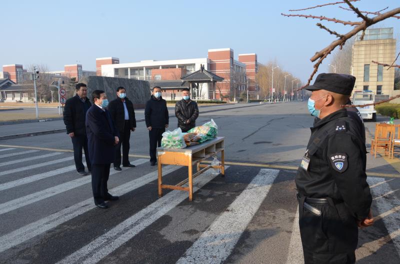 2月11日上午,校党委副书记刘宝君,党委委员、副校长王海代表学校党委、行政分别来到章丘、历下校区,看望慰问值班员工,向全校坚守春节值班岗位的一线员工致以新春的问候与祝福,并检查指导寒假期间疫情防控工作和校园安全工作落实情况。