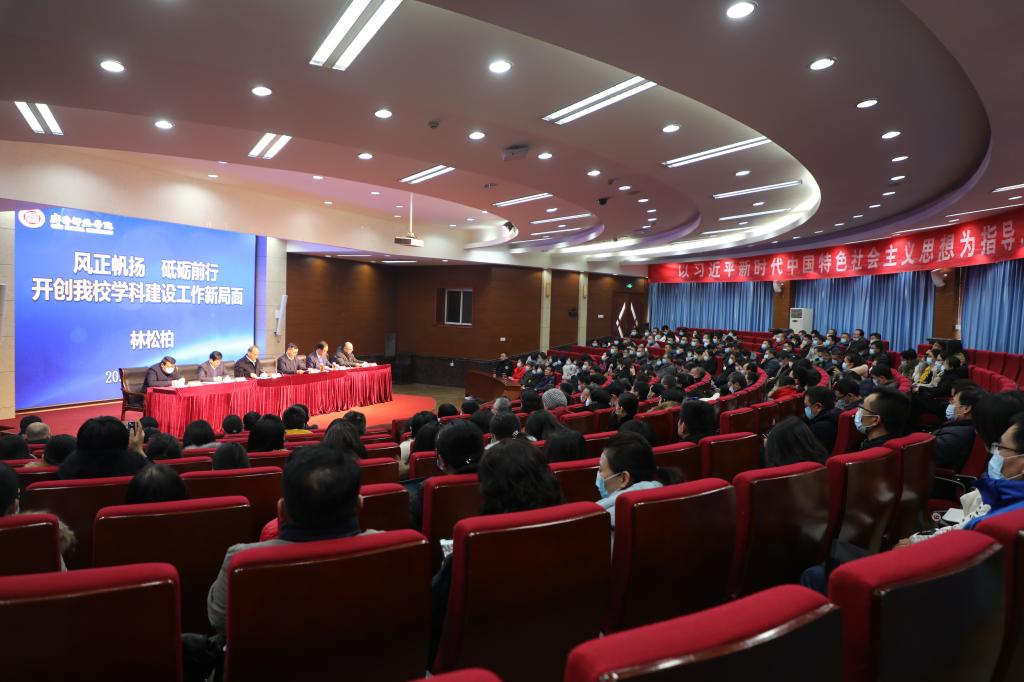 林松柏作了题为“风正帆扬,砥砺前行,开创BEAT365官网学科建设工作新局面”的主题报告。报告从重点学科、科研平台、科研成果、学科队伍、服务社会能力、学术氛围、科研管理等七个方面对“十三五”时期的学科建设进行了回顾和总结,并结合BEAT365官网建设高水平应用型学科本科院校的战略目标指出学科布局、高层次科研成果、学科队伍、高层次科研平台和应用型科学研究等方面的不足和出现的问题,并对“十四五”时期学科建设的总体目标和主要任务做出了具体部署。