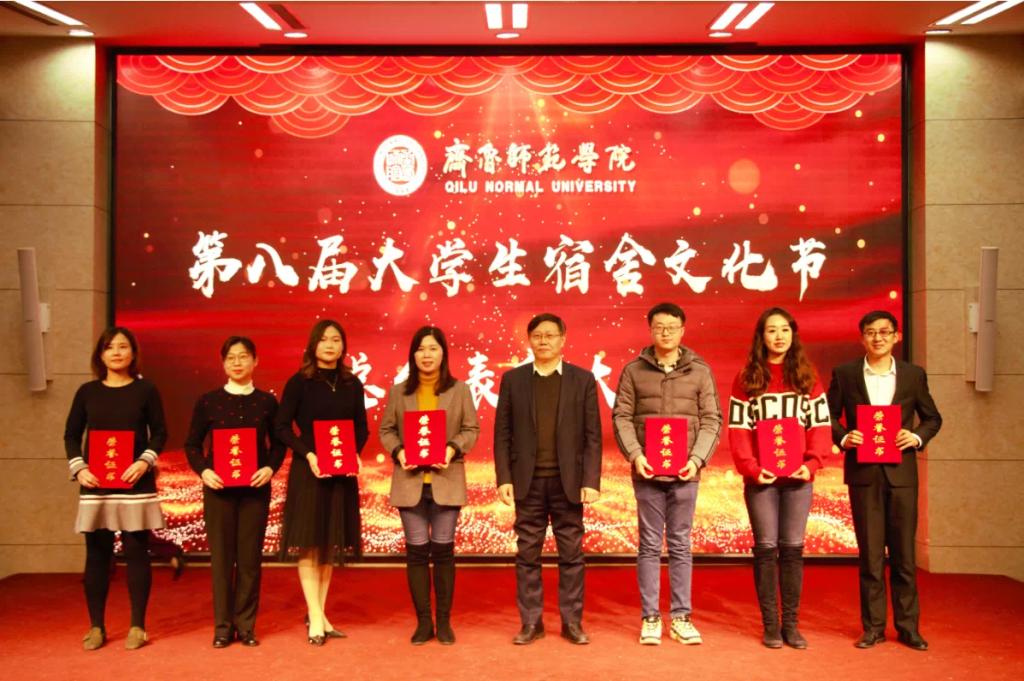 本次大会对本届文化节开展的八项活动进行了表彰。其中,在山东省“最美逆行”征文大赛中,《抗疫时刻,有我,有我!》获二等奖,《疫情之下,尽显家国情怀之担当》获三等奖,《逆行,黑暗中开出花朵》获优秀奖;山东省“疫路同行”文艺展演大赛中,舞蹈《我等你》、歌曲《你的答案》均获三等奖;山东省“勠力同心”微电影大赛中,《疫外的温暖》获一等奖,《我要去抗疫》获二等奖。同时对本届文化艺术节“优秀指导教师”和“优秀组织单位”进行了表彰。此外还评选出了八位“学生公寓服务标兵”,对他们为宿舍设施维护建设做出的贡献表示感谢。